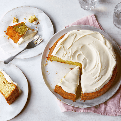- Spread this over the top of the cake and serve.