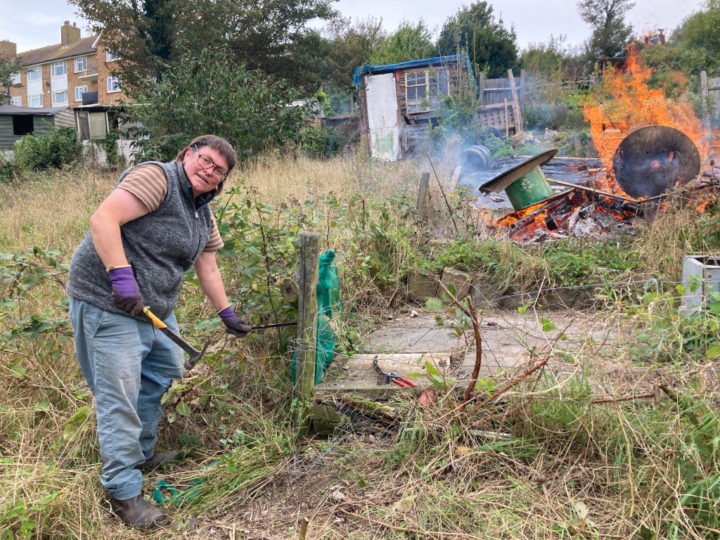 On Sunday 24 September, volunteers helped clear much of Craven Vale plot 47 – home to the Society’s new Mini Bed Scheme – including pulling up masses of brambles, rotten fence posts and weeds, much of which was burnt on a very satisfying bonfire!